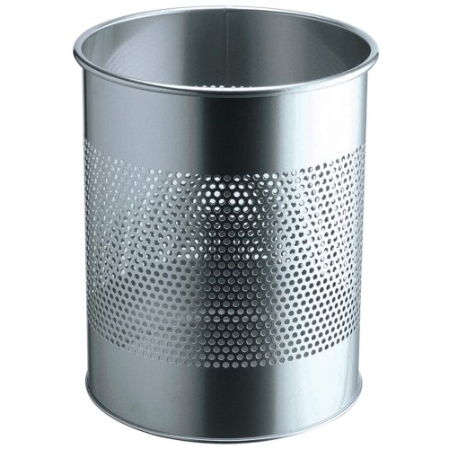 Durable Round Metal Perforated Waste Bin - Scratch Resistant Steel - 15L Silver