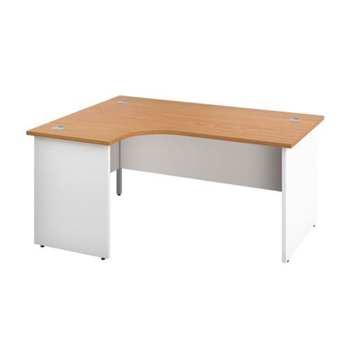 Panel Plus desks offer a traditional styled desk that will blend into any office environment, with solid leg panels in white and contrasting wood finish tops.
