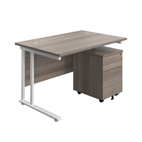 1200X800 Twin Upright Rectangular Desk Grey Oak-White + Mobile 3 Drawer Ped