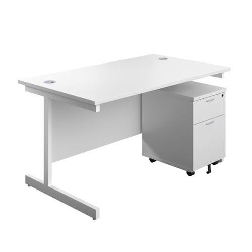 1400X800 Single Upright Rectangular Desk White-White + Mobile 2 Drawer Ped
