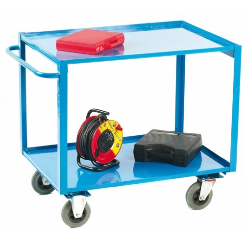 2 Tier Shelf Trolley; 1100 x 700 x 980; Fixed/Swivel Castors; Steel; 300kg; Blue