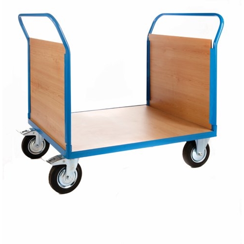 2 Veneer Ends Platform Truck; 1300 x 700 x 1050; Fixed/Swivel (x2 Braked) Castors; Steel; 500kg; Blue/Veneer