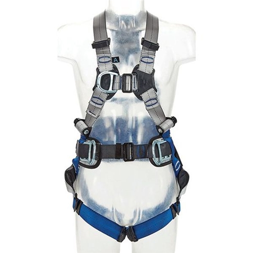 3M DBI-SALA ExoFit XE50 Positioning Safety Harness with pass-through buckles. The 3M DBI-SALA ExoFit XE50 is designed with high-quality components specially developed for enhanced safety and fit while working at heights. Built with durable 26kN polyester webbing and alloy steel hardware, 3M DBI-SALA ExoFit XE50 was created to endure the daily conditions of your job site. Cross Chest Buckle assembly for central front fall arrest attachment point - optimised position on body. Revolving torso adjusters (patented) for quick and easy harness fit and adjustment. Rear Large D-Ring, Front Standard D-Ring, Work Positioning Large Cranked D-Ring attachment points. Waist Padding - Optional comfort padding is available as accessory (order separately). Optional shoulder pads have yoke design to reduce uncomfortable chaffing to the neck. Integrated pSRL tunnel lets you quickly and easily connect and disconnect Personal SRLs. Suspension trauma relief straps with low-profile design included. Steel hardware. Equipped with auto-resetting and re-positionable lanyard keepers for fast and easy parking of snap hooks and carabiners. 3M Connected Safety ID (RFID) integrated for simplified inventory, inspection, and record management. Industry: Construction, General Industrial, General Manufacturing, Transportation MaxWeight: 140kg EN358:2019 CE EN361.