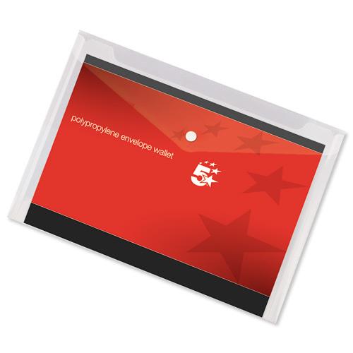 5 Star Office Envelope Stud Wallet Polypropylene A4 Transparent Clear [Pack 5]