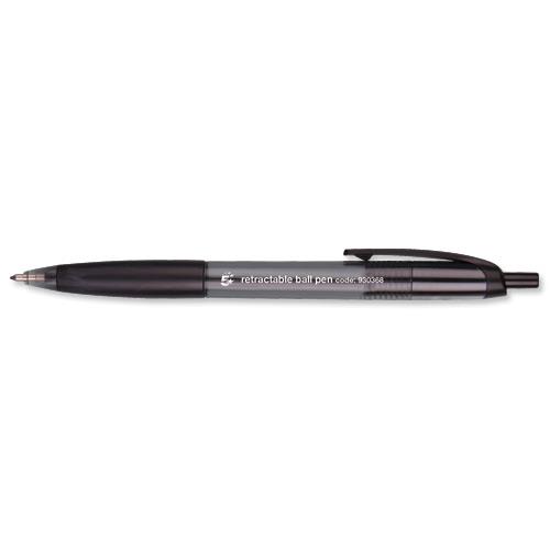 5 Star Office Grip Ball Pen Retractable Medium 1.0mm Tip 0.7mm Line Black [Pack 12]