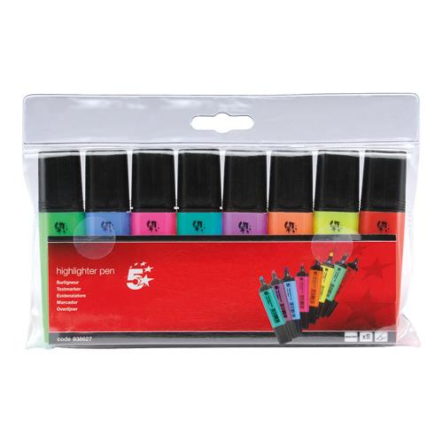 5 Star Office Highlighters Chisel Tip 1-5mm Line Assorted [Wallet 8]