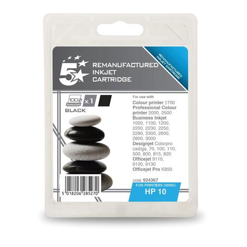 5 Star Office Remanufactured Inkjet Cartridge Page Life 1750pp Black [HP No. 10 C4844A Alternative]