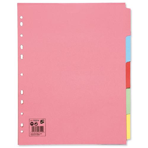 5 Star Office Subject Dividers Multipunched Manilla Card 5-Part Extra Wide A4 Assorted [Pack 10]
