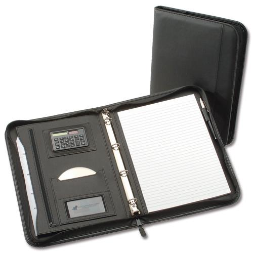 5 Star Office Zipped Conference Ring Binder with Calculator Capacity 30mm Leather Look A4 Black