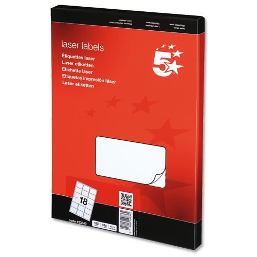 5 Star Office Multipurpose Labels Laser 18 per Sheet 63.5x46.6mm White [1800 Labels]