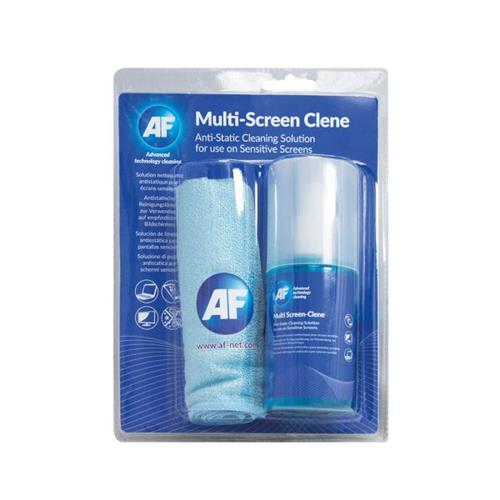 AF Multi-Screen Clene provides you with an easier way to keep your technology clean. It can be used on a range of different screens without damaging the surface, and leaves them crystal clear and sanitised. This product is suitable for computer monitors and touchscreen devices. It can also be used on mirrors, lenses and OHPs. This pack contains a 200ml spray pump, plus a large microfibre cloth.