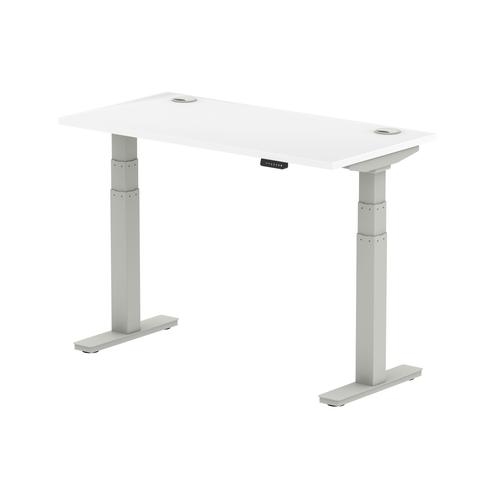 Air 1200 x 600mm Height Adjustable Office Desk White Top Cable Ports Silver Leg