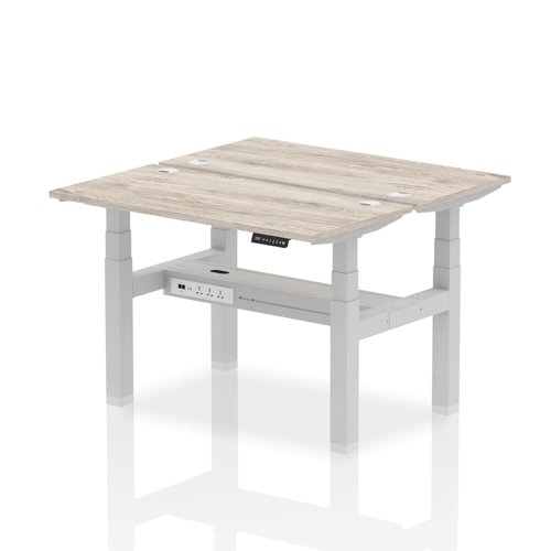 Air Back-to-Back 1200 x 600mm Height Adjustable 2 Person Office Bench Desk Grey Oak Top with Cable Ports Silver Frame