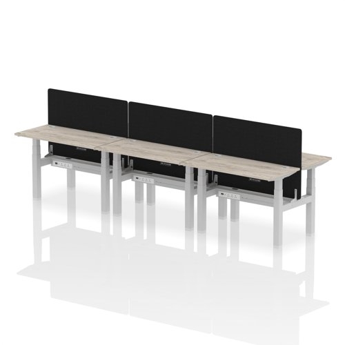 Air Back-to-Back 1200 x 600mm Height Adjustable 6 Person Office Bench Desk Grey Oak Top with Cable Ports Silver Frame with Black Straight Screen