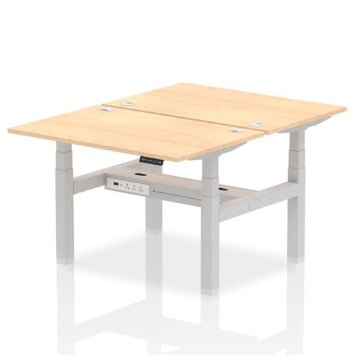 Air Back-to-Back 1200 x 800mm Height Adjustable 2 Person Office Bench Desk Maple Top with Cable Ports Silver Frame
