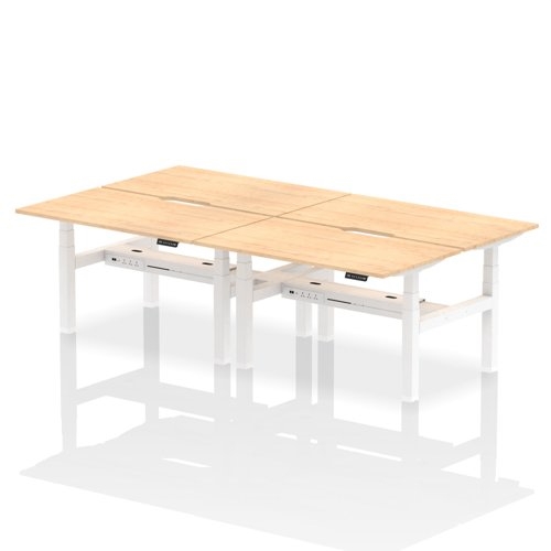 Air Back-to-Back 1400 x 800mm Height Adjustable 4 Person Office Bench Desk Maple Top with Scalloped Edge White Frame