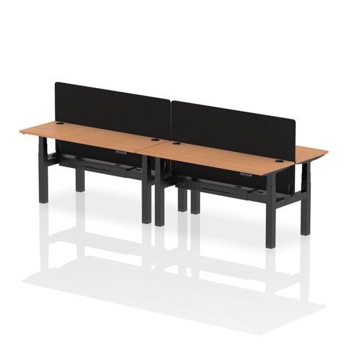 Air Back-to-Back 1600 x 600mm Height Adjustable 4 Person Office Bench Desk Oak Top with Cable Ports Black Frame with Black Straight Screen