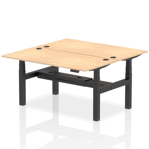 Air Back-to-Back 1600 x 800mm Height Adjustable 2 Person Office Bench Desk Maple Top with Cable Ports Black Frame