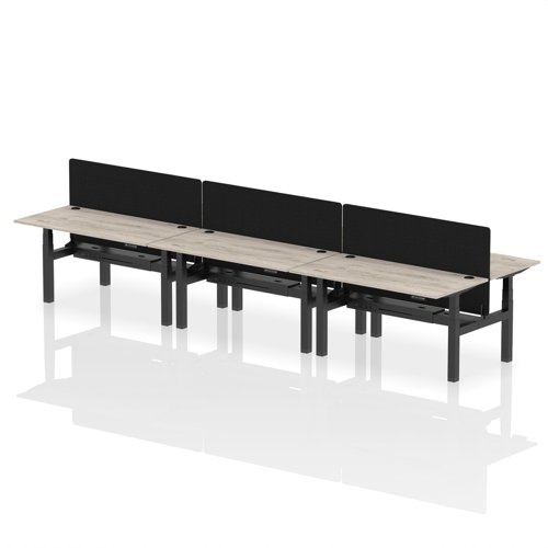 Air Back-to-Back 1600 x 800mm Height Adjustable 6 Person Office Bench Desk Grey Oak Top with Cable Ports Black Frame with Black Straight Screen