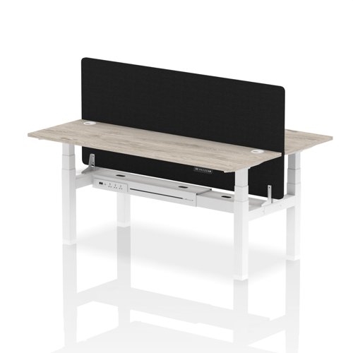 Air Back-to-Back 1800 x 600mm Height Adjustable 2 Person Office Bench Desk Grey Oak Top with Cable Ports White Frame with Black Straight Screen