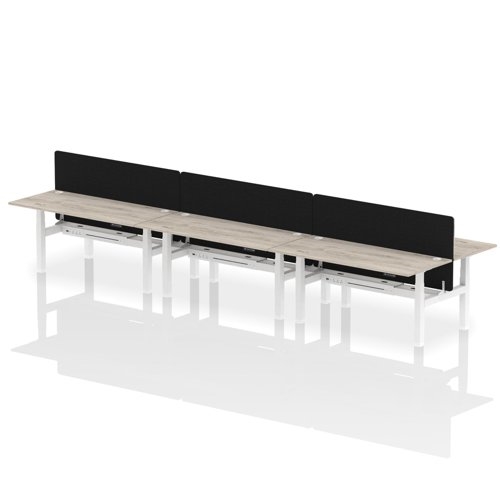 Air Back-to-Back 1800 x 800mm Height Adjustable 6 Person Office Bench Desk Grey Oak Top with Cable Ports White Frame with Black Straight Screen