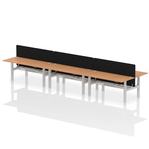 Air Back-to-Back 1800 x 800mm Height Adjustable 6 Person Office Bench Desk Oak Top with Cable Ports Silver Frame with Black Straight Screen