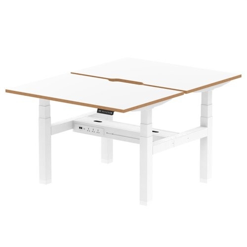 Air Back-to-Back Oslo 1200 x 800mm Height Adjustable B2B 2 Person Office Bench Desk White Top Natural Wood Edge White Frame