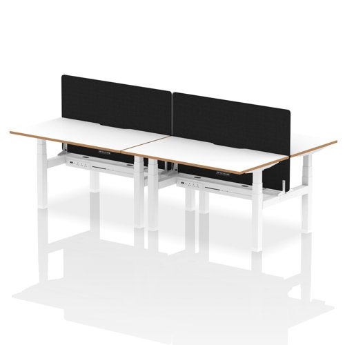 Air Back-to-Back Oslo 1400 x 800mm Height Adjustable B2B 4 Person Office Bench Desk White Top Natural Wood Edge White Frame with Black Straight Screen