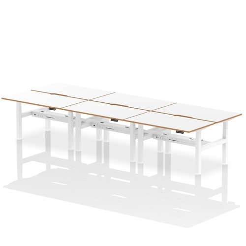 Air Back-to-Back Oslo 1400 x 800mm Height Adjustable B2B 6 Person Office Bench Desk White Top Natural Wood Edge White Frame