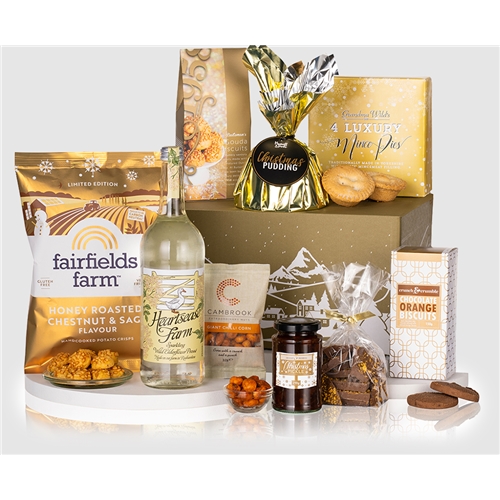 Beautifully presented in a charming gold-printed Christmas carton, this gift is brimming with sweet and savoury delights. Enjoy the rich, festive taste of a Maxwell & Franks Alcohol Free Christmas Pudding, and tuck into Grandma Wild’s Luxury Mince Pies – a seasonal staple that never fails to please.