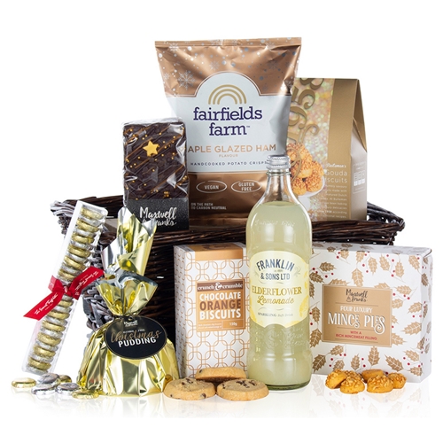 - The festive treat also includes Maxwell & Franks Mince Pies, Buiteman Gouda Biscuits, and Fairfields Farm Maple Glazed Ham Crisps.