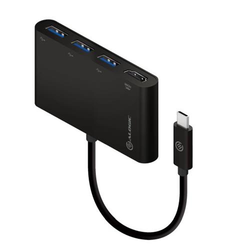 ALOGIC USB-C Adapter with 4K HDMI & 3 Port USB 3.0 Hub. Host interface: USB Type-C, Output interface: HDMI,USB 3.0. Product colour: Black, Maximum cable length: 0.1 m