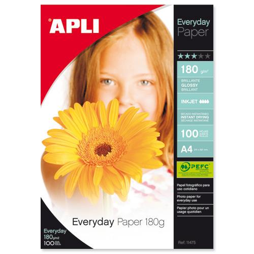 Apli Everyday A4 Glossy Paper 180gsm Ref 11475 - Pack 100