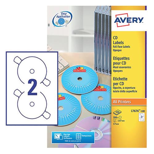- Avery Laser CD Labels feature a large 117mm full face design.