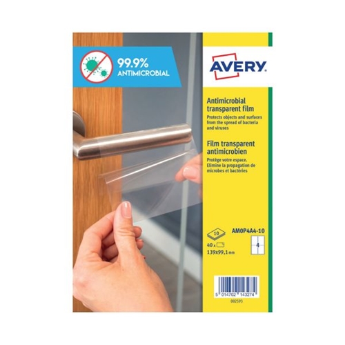 Avery Permanent A4 Antimicrobial Film Labels (Pack of 40) AMOP4A4-10