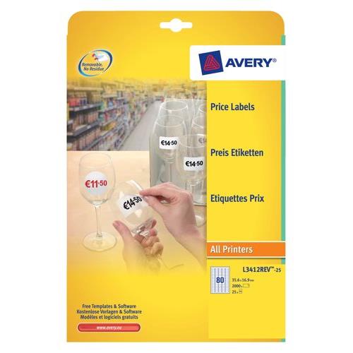 Avery Price Labels Removable 80 Per Sheet 36.2x16.9mm Ref L3412REV-25 [2000 labels]