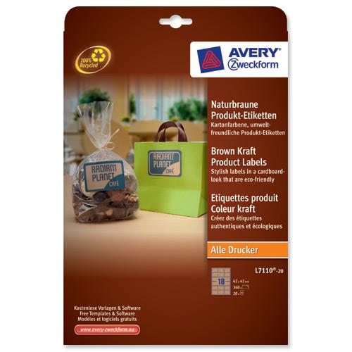 Avery Product Labels 18 per Sheet 62x42mm Brown Kraft Rectangular Ref L7110-20.UK - 360 labels