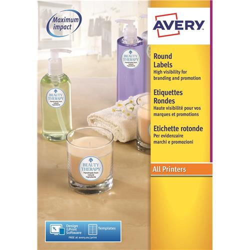 Avery Special Labels Permanent Round 24 per Sheet 40mm Diameter White Ref L3415-100 [2400 Labels]