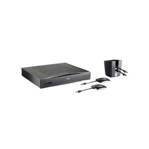 This ClickShare presentation system is designed for instant interactive collaboration in high-end meeting/conference rooms. Featuring a wide range of interactivity features including annotation, blackboarding and more. The system allows up to 8 users to share simultaneously, and with two 4K DCI, displays can be driven by a single base unit. The HDMI input and output make it easy to switch between wireless and wired sources. Simply use the The ClickShare app and download firmware version 1.7 to the base unit. This system includes two ClickShare buttons which plug into the device enabling content to display on the presentation screen at the click of a button. 4K DCI also included.