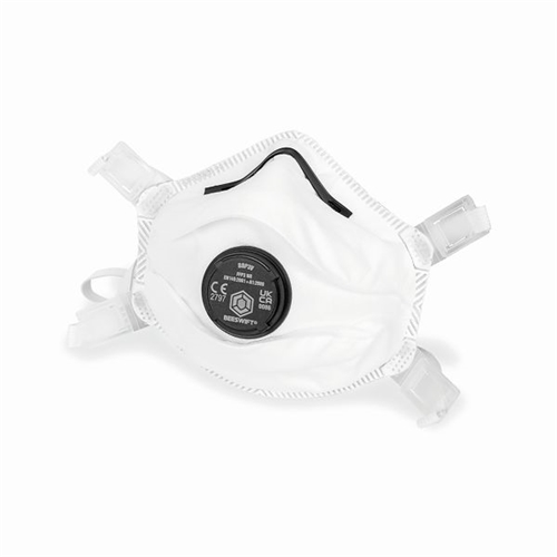 The Beeswift B-Brand BBP3 with an unique Big Eye design provides very low breathing resistance due to the increased filtration area. The Polypropylene (PP) outer layer that provides smooth lining and avoids loose fibres. An embossed fringe seal avoids fluffy open layers around the edges. The mask has an adjustable head strap that ensures the best facial seal with minimum leakage. The contour design ensures the compatibility of glasses and goggles and reduces fogging. With a full facial close-cell foam seal for an improved fit and adjustable nosepiece that ensures increased worker comfort and acceptance. With protection level FFP3 with exhalation valve it also conforms to EN149:2001 + A1:2009 FFP3 NR. For Hazard Type: Toxic dusts, fumes and water-based mists. Example: Working with hardwood, glass fibres and plastic (non PVC) and some metalwork. Supplied in a pack of 5.