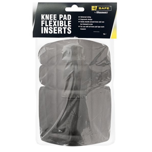 Universal sizing, Ergonomic design, Easily moulds around knee and can be trimmed to Size, For use with all knee pad type work trousers.