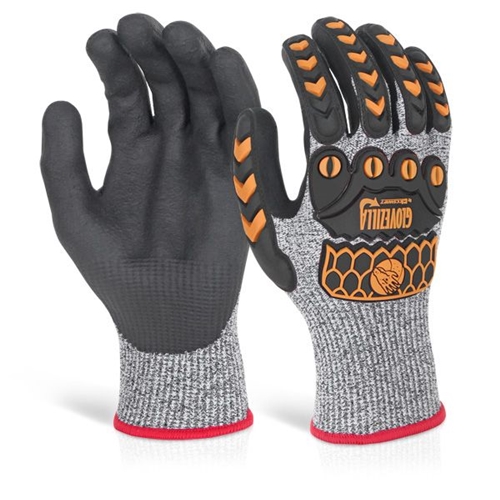 Beeswift Glovezilla Nitrile Palm Coated Gloves PVC back of Hand Protection 1Pr Grey Large GZ04GYL
