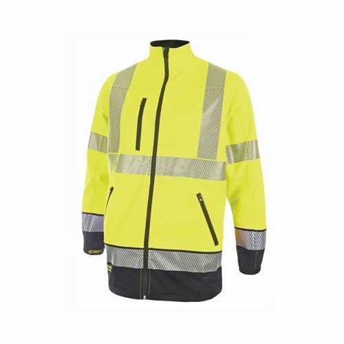 - High visibility two-tone soft shell jacket