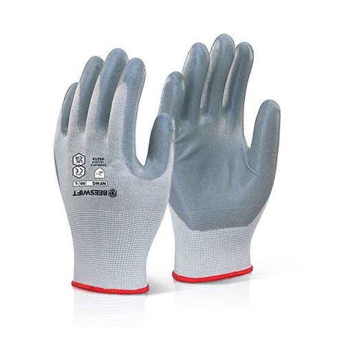Beeswift Nitrile Foam Nylon Gloves Grey 10 NFNG10