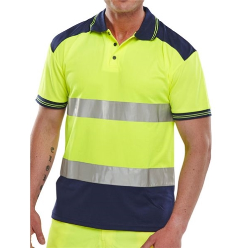 Beeswift Two Tone High Visibility Short Sleeve Polo Shirt Saturn Yellow/Navy Blue 2XL CPKSTTENSY2XL