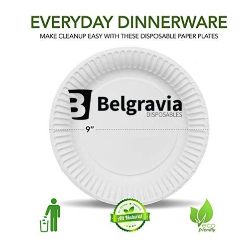 Belgravia Disposable Paper Plates (23cm, 9â€) 100's - PACK (10)