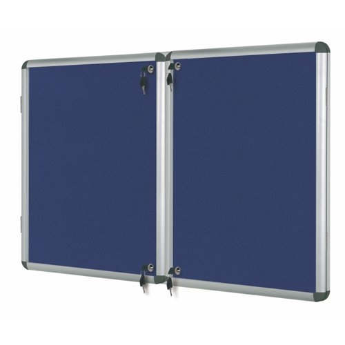 Bi-Office Enclore Display Case; Blue Felt Surface; 2 Lockable Acrylic Doors; Aluminium Frame; 1530x1230mm - 28x A4