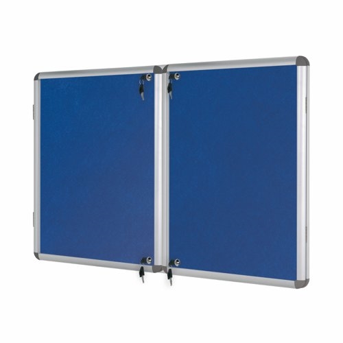 Bi-Office Enclore Display Case; Blue Felt Surface; 2 Lockable Acrylic Doors; Aluminium Frame; 2430x1230mm - 40x A4