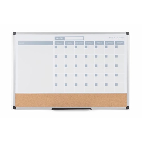 Bi-Office Maya 3-In-1 Magnetic Month Planner; Lacquered Steel And Cork Surface; Grey Plastic Frame; 900x600mm
