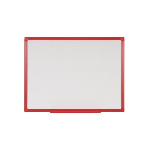 Bi-Office Maya Non-Magnetic Gridded Whiteboard; Dry Erase Surface; Red Plastic Frame; 2400x1200mm